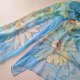 Blue long silk scarf, large wrap floral scarf, designer silk chiffon hair scarf for women.