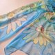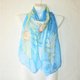 - Fashionable soft blue silk scarf with hand-painted daisies. The scarf is very soft and gentle, pleasant to the touch. It will become your favorite accessory! Supplied in a gift box. This woman scarf with daisies will be the perfect gift! This chiffon scarf is suitable for every day and as a scarf for an elegant dress.
