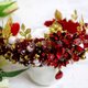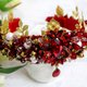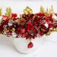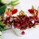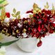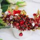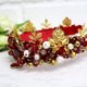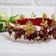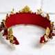 This red and gold beaded crown in royal style and embroidered with beads, crystals and perls. The base is made of velvet.