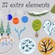 - 27 extra graphic PNG elements (including snowflakes, trees, Christmas trees, Christmas decorations, garlands, Christmas tree branch)