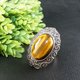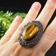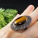 黄棕色猫眼虎眼石可调式戒指。椭圆大宝石波希米亚民族风银镀宝石戒指。手工赭黄芥末黄宝石,均码宣言戒指。维多利亚时期复古风格,男女皆宜,情侣饰品,送礼给他或她。