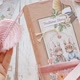 Vintage dairy contains: tea dyed paper, archival papers, lace, charms, fabric cover