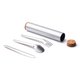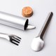 利用棱面折线让薄薄的板材也能变得坚固来满足使用需求。设计运用了这样的特性,使用医疗等级的316L不锈钢搭配压折成型,再附赠精致的铝制收纳携带罐,成为可以坚固、可推叠又具个性特色的环保餐具组。