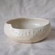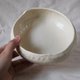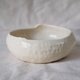 以瓷土手捏成形,暖米黄色手感温润,口缘保留盘条结束的小尾巴,碗型浅、微缩口。