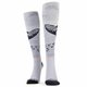 以鲸鱼为主角,环绕着鱼群与海豚在海洋中自在的游着,透过不同层次的织袜层, 让海浪看起来更栩栩如生,但银灰色调却显现出淡淡的哀愁, 仿佛透露出因为人类的自私,让大自然生态变了调, 因此我们让袜子翻转后,鲸鱼与海豚就成了一堆白骨, 希望借由这样的设计宣导守护海洋,保护地球的精神。