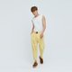 百搭的基本款九分裤,采用面料亲肤柔软,前面打折营造微正式感,穿的舒适也不随便。腰头可自行添加腰带,变换各种风格。