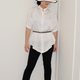 白色雪纺上衣 背心 光泽咖啡色滚边