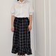 搭配法式长裙 黑色 飘逸感黑底白线条方格布料 下摆拼接斜纹路