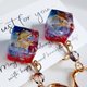树脂部件在硅胶模具中分成几层仙尘粉红、贝壳片、闪粉等,并用粉红、蓝的树脂液和UV树脂液包裹起来,有一种千层酥的感觉。