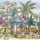 热带森林原始水彩插图 《热带森林》14x18 厘米,2021 纸、水彩笔、中性笔 (需要一个框架挂在墙上) 艺术家 - 阿纳斯塔西娅·库尔干诺娃 环保运输包装(回收材料)