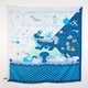 丝巾设计透过科学绘图的描线重新诠释,将传统刺绣的细致度高规格展现,正中间是回首望日的狮子,背景满布卷云纹及万字锦,其中穿插着万字、宝剑、方胜、古钱图案,下方水波纹杂有鱼、宝瓶等图样均寓意吉祥,所有线条皆以几何作为整体架构的骨干,并从中带出色泽明暗的层次感、贴近现代人的各种穿搭风格。在分版颜色的制作上多达15种色调,使薄透的丝巾更显色与展现透光质地,呈现图样最精细的完整度、同时保有色彩的充分饱和,坚持古老的手工技法,达到传递历史感的温润效果。丝巾礼盒包装简单精致,将馆藏历史文物变身为带有现代感又新潮时髦的穿搭配件。