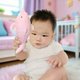 宝宝出生一个月起,小手还是紧握着状态,家长可以每天给宝宝做手指按摩操,或是帮助小手抓握小鱼好朋友,可以帮助刺激脑部发展。