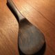 原设计是给日本师傅拌寿司饭的工具,天然实木是相对安全的材质。超硬的木材可以把匙做到非常薄而不至破损。匙面和手把扭了一个角度使得腕部可维持在一个轻松的角度。匙面向一边偏角同样是人体工学的考虑。木纹会因木材原料而有不同。