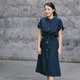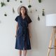 - 牛津棉布有领开襟长版洋装,两侧口袋设计,配有可拆式腰间蝴蝶结绑带,多种样式穿搭。