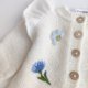 此套装包含一件连身裤和一顶帽子,皆为手工编织和刺绣。产品上绣有矢车菊和雏菊的花朵。根据连身裤的主色,花朵可以绣成蓝色、白色或粉红色。如果您需要特定颜色,请联系我,我会专门为您选择颜色。
