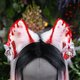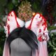 - Vampire Fox Ears Ears are: - approximately 3 inches from the headband to the tip - fully wired and posable on the headband - decorated with airbrushed bloody smudges, rhinestones accents and removable lacy bows with rhinestones and vampire themed pendants