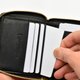 The wallet opens approximately 120° for smooth and comfortable storage and removal.