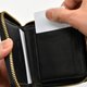The coin case opens with a snap, making it highly visible. There is no place to hide the coins, so they are easy to see and take out.