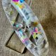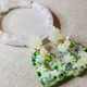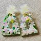 白色花朵与亮片树脂饰品组,手镯与长垂坠耳环,绿色亮片,透明,独一无二的手工饰品礼物。 手镯与耳环可分开购买。 手镯有两种尺寸,请参考附图。