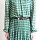 丝质横条金线布料 / 圆领设计 / 精细压折裙摆