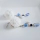 这款耳环采用温暖的白色蓬松绒毛,搭配两种大小略有差异的水滴形捷克玻璃珠与金属链,制成可随之摇曳的垂坠式耳环。