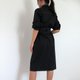 模特儿身穿 Black 色洋装,她的尺寸为 88-70-96 厘米,身高 1.74 米(约 5 英尺 8.5 英寸),她穿着 M 尺寸。