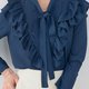 Blouse Frilled bowtie 9-quarter sleeve / Liala x PG - 女装衬衫 - 棉.麻 蓝色