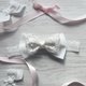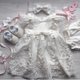 Hand made dress with lace, pearls and bows, headband, panties and booties for girl or baby girl. Lace on a headband may be different from the photo. Can be as first birthday, baptism, christening dress. Also it can be as takehome outfit or baby shower gift for baby girl. I can knit a receiving blanket for this outfit if you need. Your girl will have a great look in this outfit.