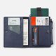 /书本式护照夹,护照收纳采拉绳抽取,简单快速的使用设计。里面有3个卡片插槽与1个登机卡收纳,2个斜口收纳袋可存放收据或票证,以及1个大口袋,可收纳另一本证件。
