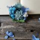 花材有蓝色玫瑰通草旱雪莲蜡菊永生绣球花等