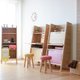 这个书桌最大的魅力为"小巧"。宽度70cm、深度37cm。高度有134.5cm,但因为越向上深度越浅的关系,完全不会有压迫感。且书桌的桌板可以收折,因此可变得小巧。可爱的粉彩色系,就如同名字的“马卡龙”一般。沉稳的色调,长大后也能使用。