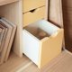 桌板是缓慢打开的安全设计。小孩子独自也能安心使用,让妈妈很放心。把手大且好握,边角也漂亮地磨圆,连看不见的地方都有着细致的手艺。不只是书桌、进行裁缝或制作模型、电脑桌等,作为大人兴趣专用的桌子也是优秀的一款。细小零件或容易坏的机器等,一瞬间盖住就能整理。