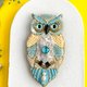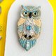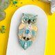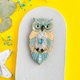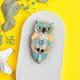 手工刺绣串珠猫头鹰胸针|独特礼物|米白与蓝色|乌克兰制造