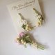 每朵花用白色绣线鈎出, 加上定型水固定,每个扣针和耳环用手工鈎花而成, 在衣服上扣上成为一个小饰品。