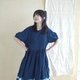衣服的版型是可爱的娃娃袖连衣裙,在袖子和腰部都做了多道缝线,