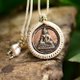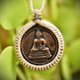 正面是盘腿而坐的佛陀,背面则描绘着修行僧的图案。