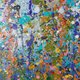 滴画技术创造了动态和运动的幻觉,反映了激发艺术家创作这幅画布的自然元素。
