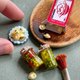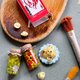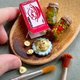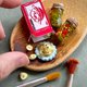 一套用于烹饪美味佳肴的迷你套装、一包馄饨和一盘馄饨,还有几罐罐装蔬菜。此套装与照片一样亮,亮度从 1 到 12