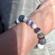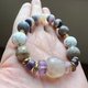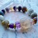 紫色顶轮与灰白色自然原矿晶石手链,灵性温柔的频率,提升爱的智慧,使身心灵平衡健康,特殊宝石切割,搭配黄铜金色调与天然大理石纹路松石,轻时尚与华丽感。