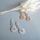 这款耳环以极细金属线手工钩织出12mm、16mm、26mm三种尺寸的圆形图样,层层堆叠出大器又不失轻盈感的设计。