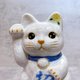 招财猫表面使用花结晶釉,展现出独特的结晶效果,增添了艺术感和层次感。釉面光滑,透出自然的光泽,使整体看起来更具质感。清水烧的招财猫不仅是家居装饰品,更是一件高雅的艺术品,展示了精湛的工艺技术和文化内涵。