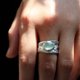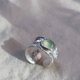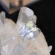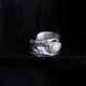 戒指内外肌理都是取自墨鱼骨的天然纹理,镶嵌水滴形葡萄石,宝石特意镶嵌在戒面的一侧,更具特点。