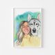 Customized watercolor portrait of pet and owner, custom illustration生日礼物 - 订制画像 - 纸 蓝色