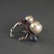 略带红色的银色镶有看起来温和的棉珍珠。