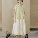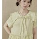 - 森日快乐 海军领蝴蝶结苎麻短袖衬衫
