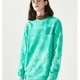 - 采用全棉鳞底毛圈布结合流行的扎染工艺。面料挺括,手感舒适。宽松落肩版型,兼具包容度跟时尚感。流行元素扎染工艺,体现潮流的印记。圆领的领型,配合双针工艺,彰显品质。胸口感温材质的胶印会根据温度变化变色,极具科技感和趣味性。