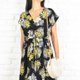 充满夏日气息的热带鸡蛋花图案,搭配黑黄配色,让这款连身长裙更加迷人。