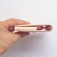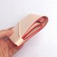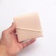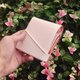 - Pale pink leather with a red edge. Green linen thread. This simple mini bi-fold wallet is finished with a natural texture.