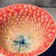 此作品是透过四到五层不同的釉药层层堆叠,借由每层施釉厚薄拿捏,并窑烧至1260度,历经20小时的烈火淬炼,让它在窑里收缩流动,产生出孔雀羽毛的斑纹与流动感。