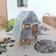 这是一栋独特的手工混凝土房屋,有两个木制抽屉和木腿